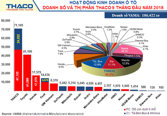 THACO announced the sales of the nine first months of 2018 of 71,145 vehicles.