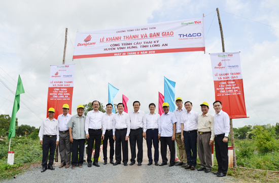 Responding to former Vietnamese President Truong Tan Sang’s calling for domestic enterprises to contribute to the construction of rural bridges in Mekong Delta’s Long An Province, THACO has funded 19 bridges with the value of VND13.5 billion in border districts of the southern province.