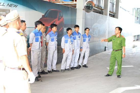 Last week, showrooms in An Suong, Hue, Vinh, Hanoi, Giai Phong (Hanoi) and Northern Truong Hai Special Mechanics Company and the local Fire Prevention Police Departments organized the program "Fire prevention and rescue training program" for the unit staff.