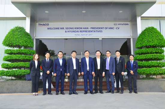 On 20 April 2017, high-level management of Hyundai Group visited and worked with THACO. Welcoming the guests was Mr Mai Phuoc Nghe - THACO Vice General Director in charge of commercial vehicle business.