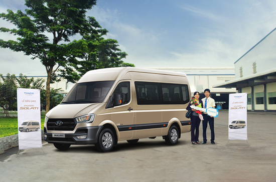 The Hyundai Solati mini bus (16 seats) boasts its luxury, fine European standards, modern design, comfortable furniture, and superior quality. The product uses new and strong technology engine, environmentally-friendly Euro IV emission standard, launched by THACO in early April and earning customers' preferences.