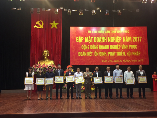In the morning of 21 March 2017, at the Conference Center of Vinh Phuc province, the provincial People's Committee held a meeting to meet enterprises in 2017. Attending the event were Mr Nguyen Van Tri, Deputy Secretary of the provincial Party Committee, Chairman of the provincial People's Committee, leaders of provincial departments and local enterprises in Vinh Phuc.