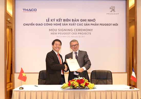 On 22 February 2017, in HCMC, "New Peugeot CKD Projects MOU Signing Ceremony" took place between THACO and PSA Group in the presence of Mr Tran Ba Duong, THACO Chairman and Mr Denis Martin, Director of the China - ASEAN Region of PSA Group.