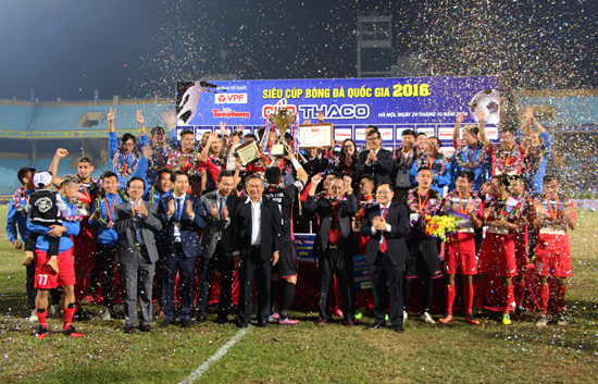 As worthy as a top competition, Hanoi FC and Than Quang Ninh have devoted to the audience a football festive with all levels of emotion. And the 2016 National Super Cup - THACO Cup has been delivered to the one worthy.