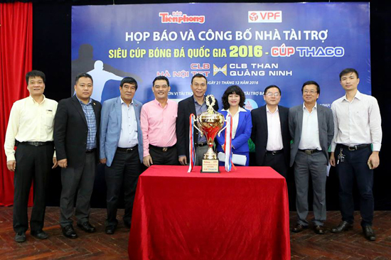 On 21 December 2016, at the headquarters of Tien Phong Newspaper (Hanoi), Vietnam Professional Football JSC (VPF), Tien Phong Newspaper and sponsor Truong Hai Auto Corporation (THACO) held a press conference to announce the 2016 National Super Cup match with the official name of the National Football Super Cup 2016 - THACO Cup.