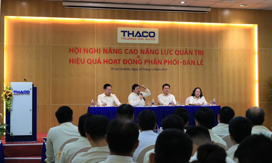 On 17 and 18 December 2016, THACO organized the conference "Improvement of management competence and distribution - retail effectiveness". Attending the event were Chairman Tran Ba Duong; General Director Nguyen Hung Minh; Deputy General Director of Passenger cars Bui Kim Kha; Deputy General Director of Commercial Vehicles Mai Phuoc Nghe, Deputy General Director of Retail system Nguyen Thien My; Board of Directors and directors/deputy directors of the departments.