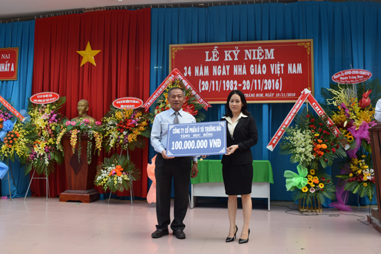 On 19 November 2016, Thong Nhat A High School in Dong Nai organized the 34th anniversary of Vietnam Teacher’s day 20-11. At the ceremony, THACO awarded 20 scholarships, each of which is 5 million VND to the needy students from the school.