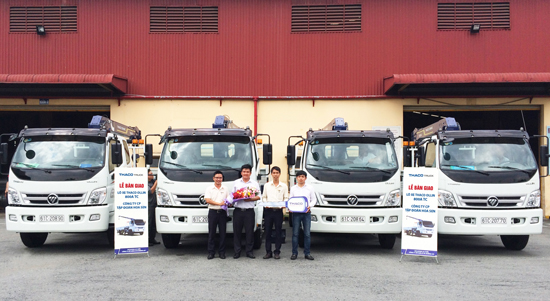 Hoa Sen Group - a THACO's long-term customer continued to invest in 10 THACO Ollin800A crane trucks and received the pack from THACO Lai Thieu Branch (Binh Duong) on 13 May 2016.