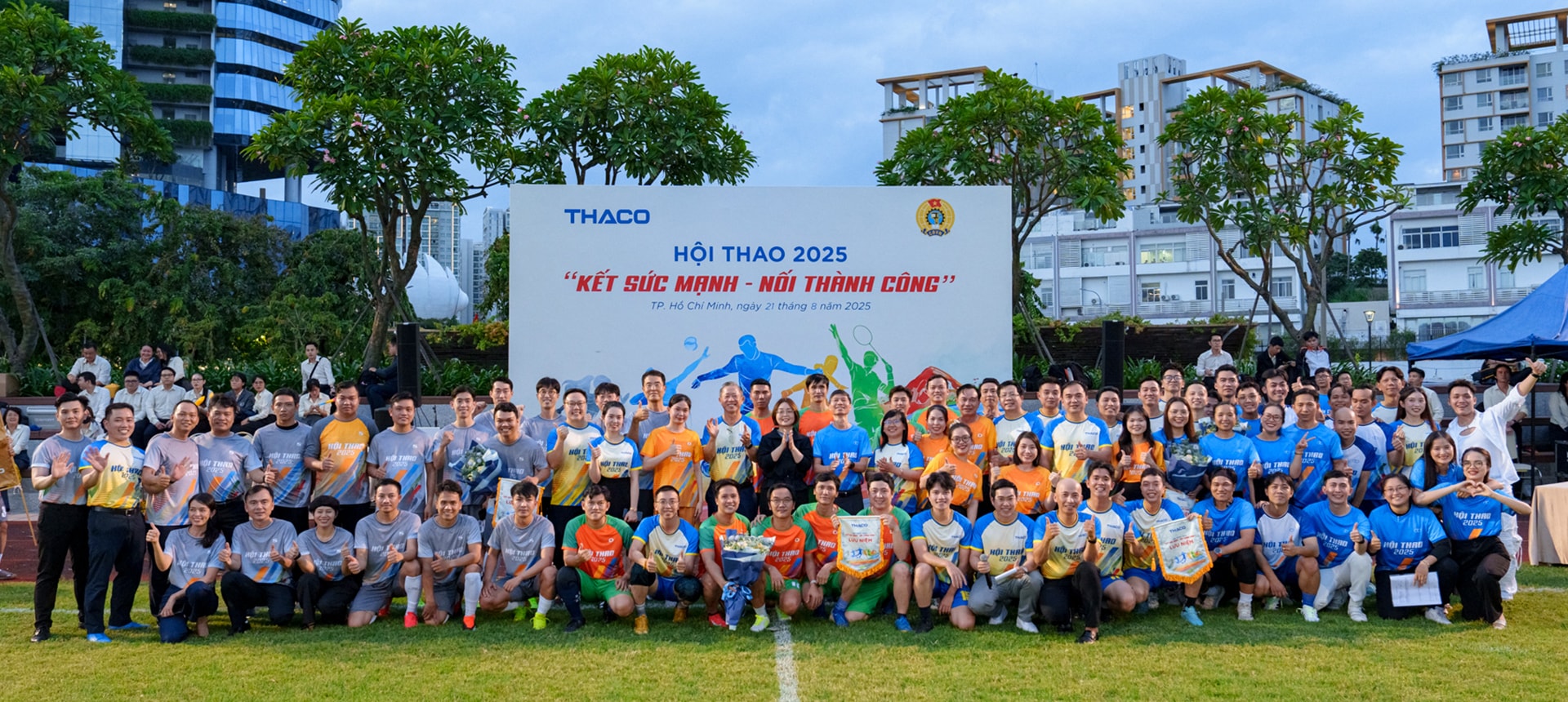 Ngày 21/8, tại sân bóng đá Khu đô thị Sala, THACO tổ chức Lễ khai mạc Hội thao “Kết sức mạnh - Nối thành công” năm 2025 Khối các Văn phòng TP.HCM. Buổi lễ diễn ra sôi nổi với sự tham dự của Lãnh đạo THACO, các TĐTV cùng đông đảo vận động viên và cổ động viên.