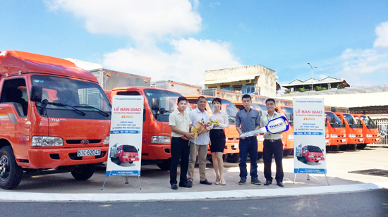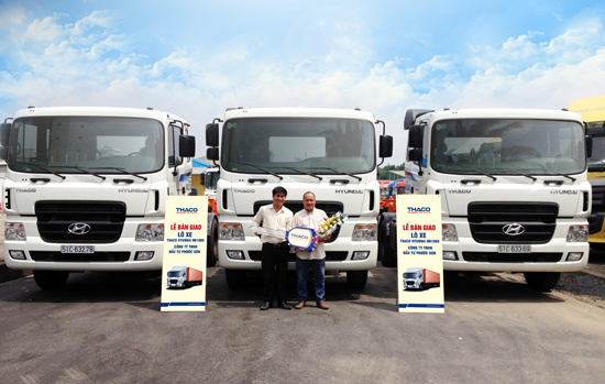 Vừa qua, chi nhánh Thaco Bình Triệu - TP.HCM đã bàn giao 5 xe Thaco Hyundai HD1000 và 2 xe ben Thaco Forland FLD345B với tổng trị giá hơn 10,3 tỷ đồng cho Công ty TNHH Đầu tư Phước Sơn.