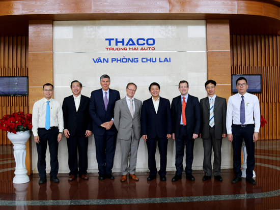 On the occasion of his business trip to Vietnam, on 25 May 2017, Mr Bruno Angelet - Ambassador, Head of Mission of the European Union and Mr Bertrand Lortholary - French Ambassador in Vietnam visited Chu Lai - Truong Hai Auto Manufacture and Assembly Complex. Mr Tran Ba Duong - THACO Chairman welcomed the delegation.