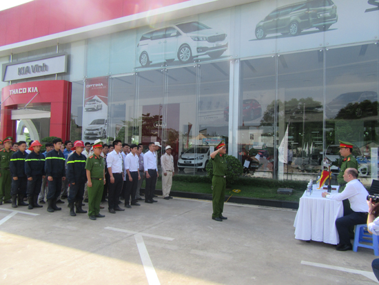 Last week, showrooms in An Suong, Hue, Vinh, Hanoi, Giai Phong (Hanoi) and Northern Truong Hai Special Mechanics Company and the local Fire Prevention Police Departments organized the program "Fire prevention and rescue training program" for the unit staff.