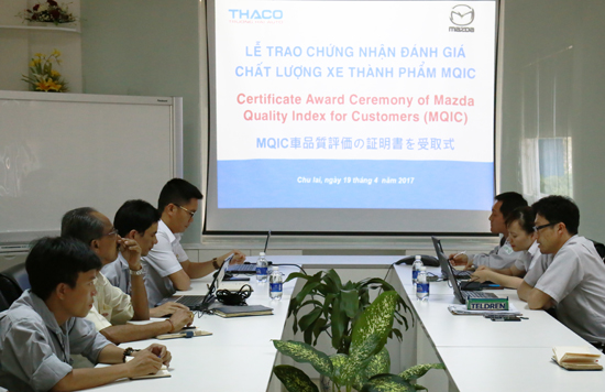 In the morning of 19 April, at the factory of Vina Mazda took place the awarding ceremony of Complete Unit Quality Evaluation Professional Certificate MQIC for two staffs Doan Tran Lac and Le Hoang Anh Bao. These are two excellent people who have passed the assessment and inspection tests conducted by Japan's Mazda Corporation every two years to evaluate the capacity of personnel working in the field of auto manufacturing and assembly.