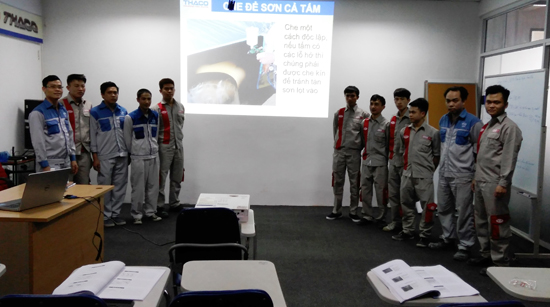 From 16-18 February 2017, Hanoi Office Training Department arranged the course "Procedure, shielding, and polishing based on drying technology" for 13 attendants being vocational students and paint technicians in Long Bien Branch.