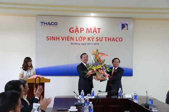 In the afternoon of 18 November 2016, THACO organized the exchange program with students from class THACO engineers – Traffic Mechanics Department, Da Nang University of Technology. Attending the program was Professor Doctor Le Kim Hung –Principal of Da Nang University of Technology. On behalf of THACO, Mr Pham Van Tai –Permanent Vice General Director attended the event.
