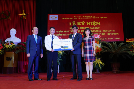 On 18 November 2016, THACO presented University of Transport Technology a 34-seat THACO TB82S bus with 1.64 billion VND worth to equip the school with the student transport vehicle for their internships at the plants, enterprises, and construction sites.