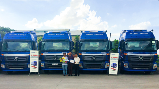Ngoc Phuoc Commercial - Service - Transport Corporation - a loyal customer of THACO has just invested in 11 THACO Foton-Auman FV380 tractors and 11 CIMC semi-trailers and received the products from Vung Tau Branch on 9 August 2016.