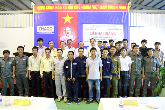 On 17 June 2016, Chu Lai - Truong Hai Vocational School collaborated with Vinh Long University of Technical Education to organize the opening ceremony of the transfer class from College to University in auto engineering technology course 41A. Attending the event were Mr Cao Hung Phi - Rector of Vinh Long University of Technical Education, Mr Pham Van Tai - THACO Standing Deputy General Director, Administrator of Chu Lai - Truong Hai Vocational School, faculty staff of the two schools and 37 freshmen - being the Complex employees who have passed the entrance exam.