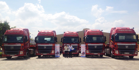 Hoa Sen Investment and Tourism Co., Ltd. - THACO's regular customer has invested in 5 more THACO Foton-Auman FV380 tractors, 5 CIMC semi-trailers and received the vehicles handed over by THACO Thu Duc Branch (Ho Chi Minh City) on 19 May 2016.