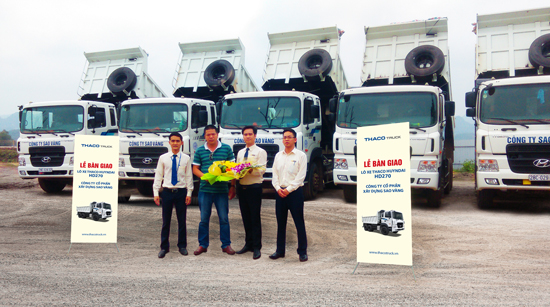 On 04 April 2016, THACO Hoa Binh Branch handed over 5 THACO Hyundai HD270A trucks to Sao Vang Construction Corporation (Hoa Binh).