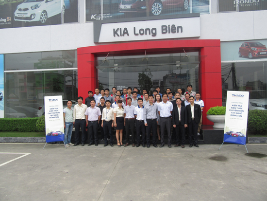 In order to assess workers' knowledge and skills, as well as the car body repair and painting factory operation management capacity as a basis for employee evaluation and grading according to the Company's employee grading system, on 10 April 2016, in Long Bien Kia Showroom's Training Department and Factory, a passenger car body repair and painting professionalism testing program was held for 12 personnel being car body repair and painting deputy managers and painting group leaders of the 2016 passenger car showroom system.