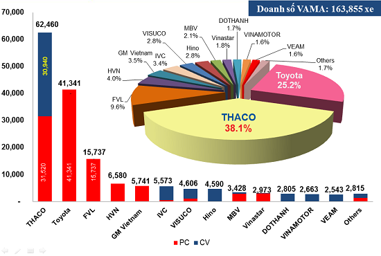 According to the report of the Vietnam Automobile Manufacturer Association (VAMA), in October 2015, the sales volume of VAMA members reached 19,181 vehicles. In the first 10 months of 2015, VAMA reached a total of 163,855 vehicles in sales.