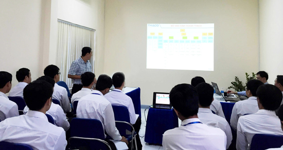 In order to help newly-recruited employees integrate into THACO’s working environment, on 31 October 2015, the Management Board of Commercial Vehicle Showroom System in the South held the training for 39 sales consultants who have experience of less than 3 months at Commercial Vehicle Showrooms in the South.