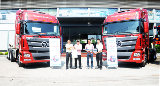 On 16 October 2015, THACO Da Nang Branch handed over 3 high-class tractors Thaco Auman FV375 for Tri Dragon Logistics SMLLC.