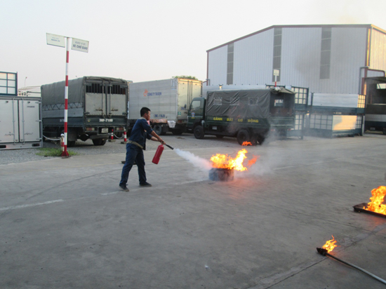 In order to enhance awareness of employees in complying laws and regulations of fire safety and provide them with knowledge as well as skills to deal with explosion and fire accidents, on 17 October 2015, THACO Northern Branch cooperated with Fire Safety Police Department of Long Bien District to hold fire safety training for 70 employees of the Northern Specialized Machinery Company, Land Transportation Company, Long Bien Branch, and Phuc Dong Branch.