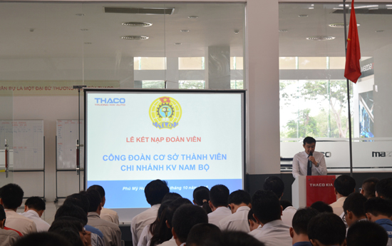 Implementing the plan to develop trade union of THACO local trade union’s executive committee, on 10 and 12 October 2015, the local trade union of the Southern Branch cooperated with 15 department trade unions to hold the ceremony to admit 291 new members, totaling 702 members, almost two-fold increase compared to that of 2014.
