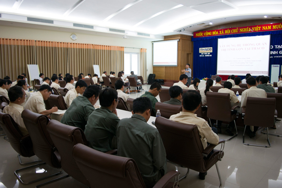 On 17 and 18 October 2015, the training of lean management was held at Chu Lai Office for 60 potential employees of A7 category at the Complex with the instruction of Dr. Nguyen Dang Minh, team leader of “the application of lean management in Vietnamese enterprises” research.