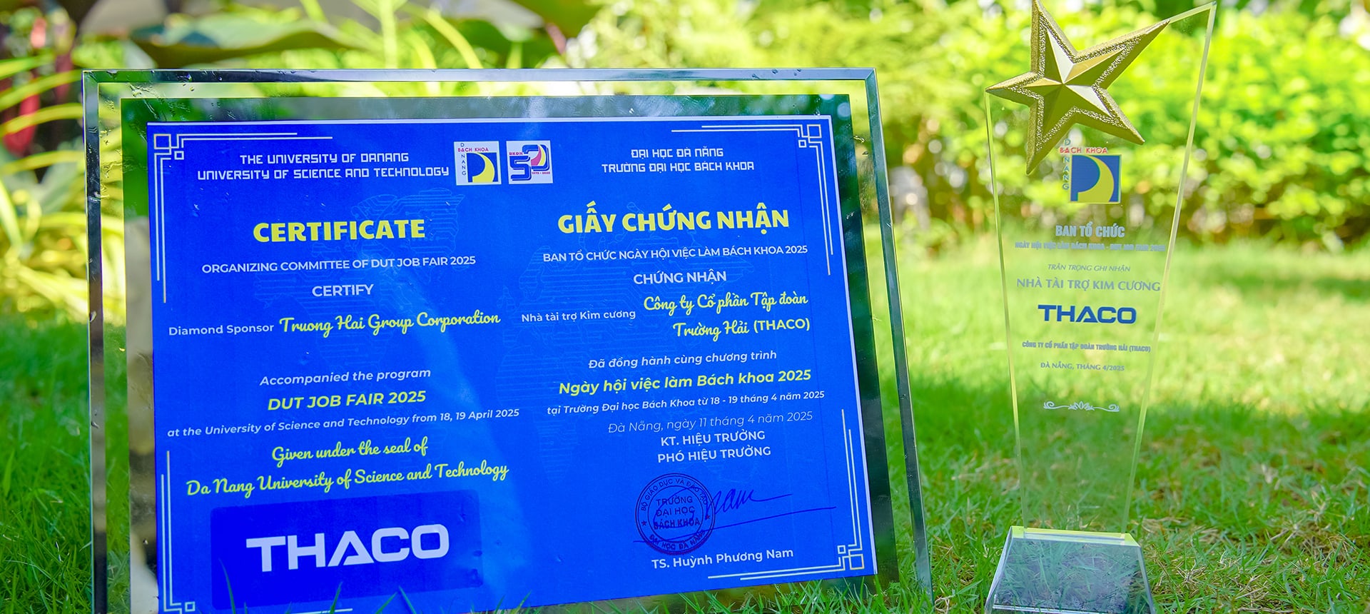 In April 2025, THACO strengthened its commitment to education by participating in the Danang University of Science and Technology (DUT) Job Fair 2025 and presenting gifts to Quang Nam students who excelled in national academic competitions.