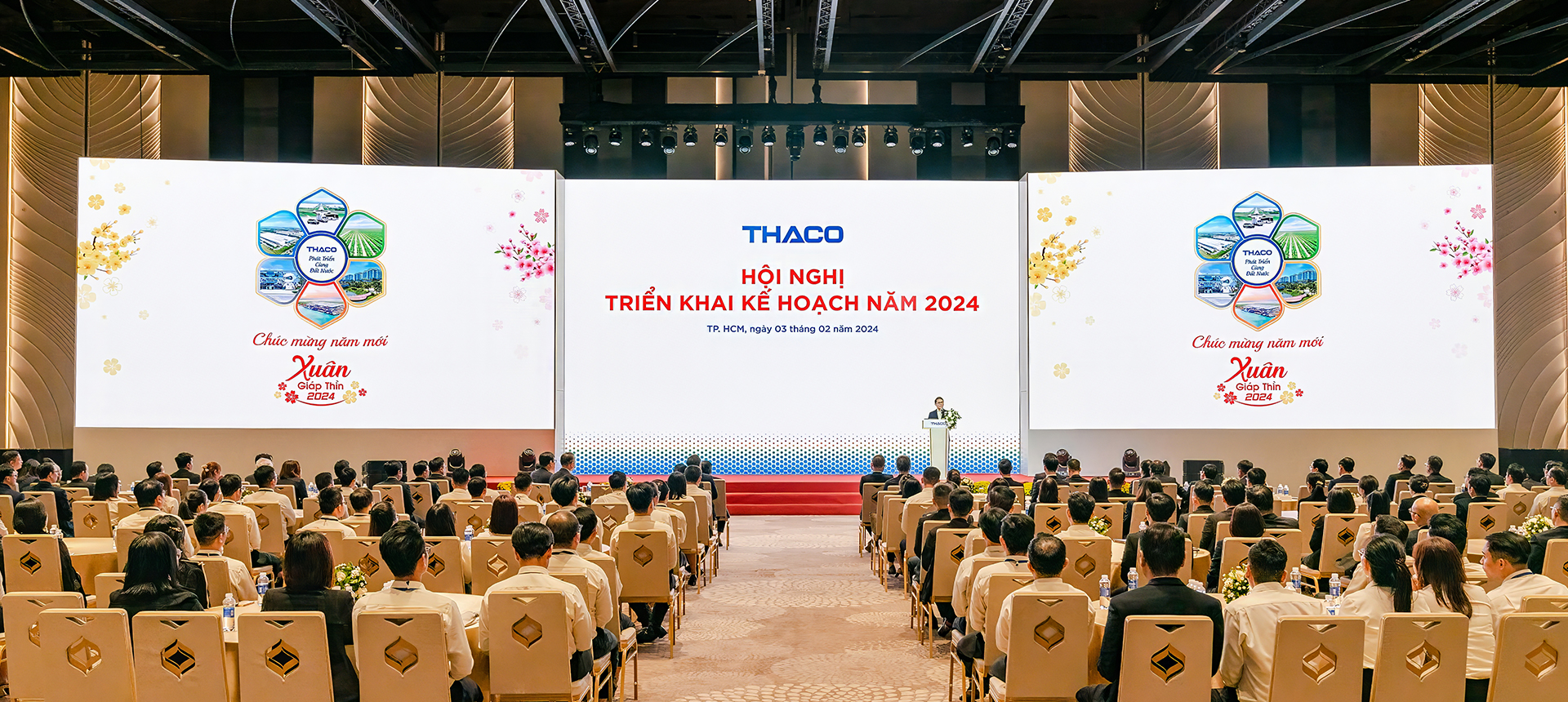 THACO convened its 2024 Business Plan Conference at Thiskyhall Sala (HCMC) on February 3. The event, led by Chairman Tran Ba Duong, Vice Chairman Nguyen Hung Minh, and President Pham Van Tai, brought together leaders and future leaders from all six Sub-holdings, functional departments, divisions, and units.