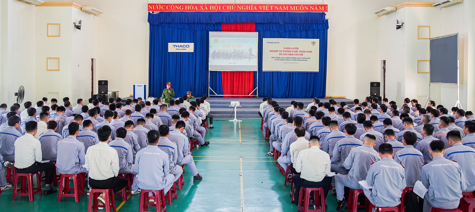 Nhằm trang bị kiến thức về pháp luật và kỹ năng phòng cháy chữa cháy (PCCC) và cứu nạn cứu hộ (CNCH) cho đội ngũ CBNV, từ ngày 23 - 24/8, Phòng An toàn lao động - Phòng chống cháy nổ THACO Chu Lai phối hợp với Công an tỉnh Quảng Nam tổ chức huấn luyện nghiệp vụ PCCC và CNCH cho gần 200 nhân sự thuộc lực lượng PCCC cơ sở của các nhà máy, đơn vị Khối Sản xuất THACO AUTO.